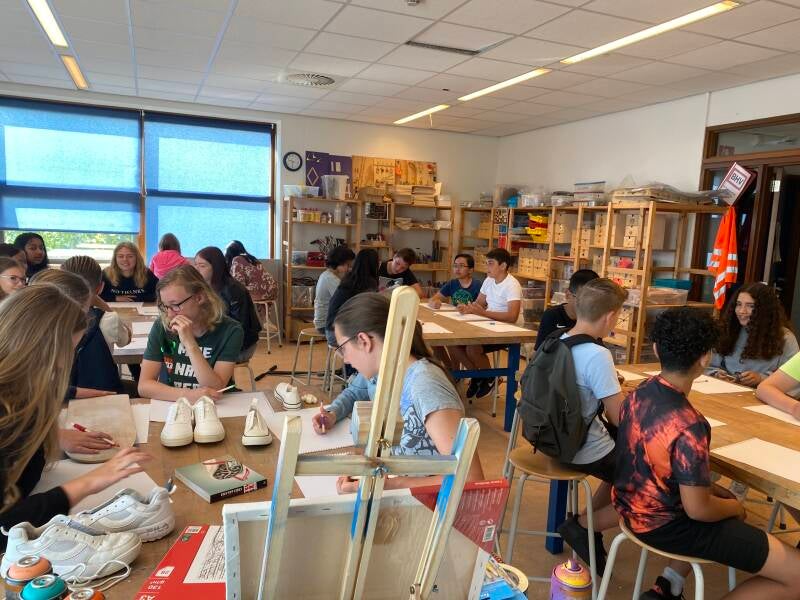 Voor groep 7 & 8 (PO) Creatieve en speelse workshops die passen bij hun belevingswereld: - Spuit je verhaal - graffiti met sjablonen over wie je bent - Mijn Superheld - kunst maken over wie jou inspireert - Wij zijn wij - een groepskunstwerk over de klas - Mini-Murals - samen een muur of schilderdoek beschilderen - Pimp je gymp/tas - ontwerp je eigen gymp of tas en customize zo een unieke creatie!