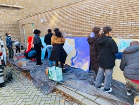 -Kleurkunst in je wijk! Graffiti op panelen op de schoolmuur van de school en door de kinderen van de Dr. Willem Dreesschool uit Laak.